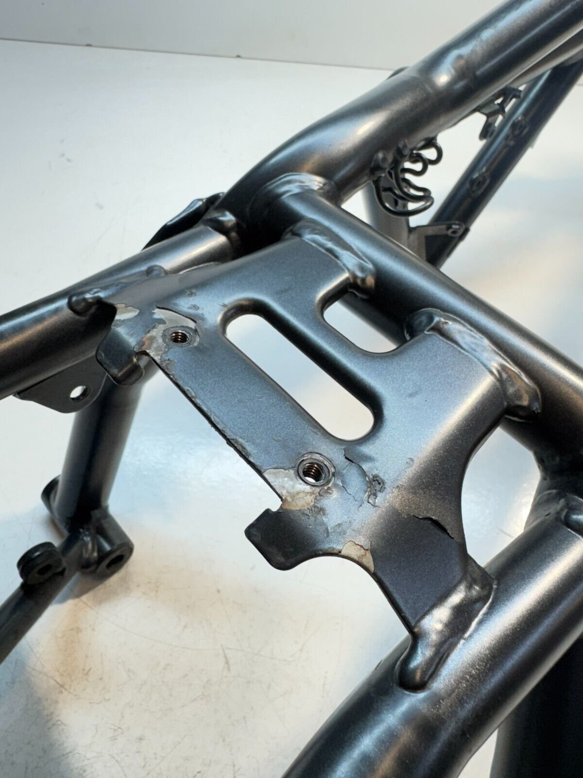 Condition: Used, straight, THE SEAT FUEL TANK MOUNT PART IS SLIGHTLY DAMAGED! SEE PICTURE Nr. 16 – 18 might have some minor wear and tear marks. OEM part.